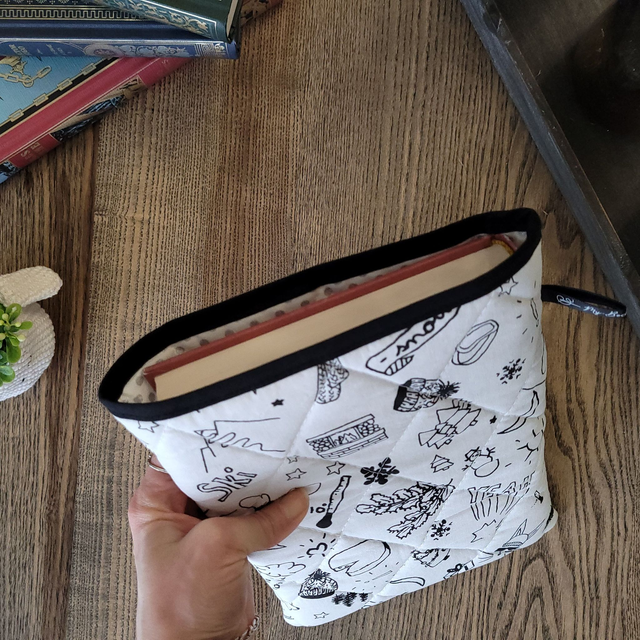 Chaque pochette pour livre est rembourrée et le plus souvent matelassée par mes soins (coutures en losange) Les pochettes sont toutes faites main.
