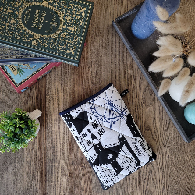 Chaque pochette pour livre est rembourrée et le plus souvent matelassée par mes soins (coutures en losange) Les pochettes sont toutes faites main.