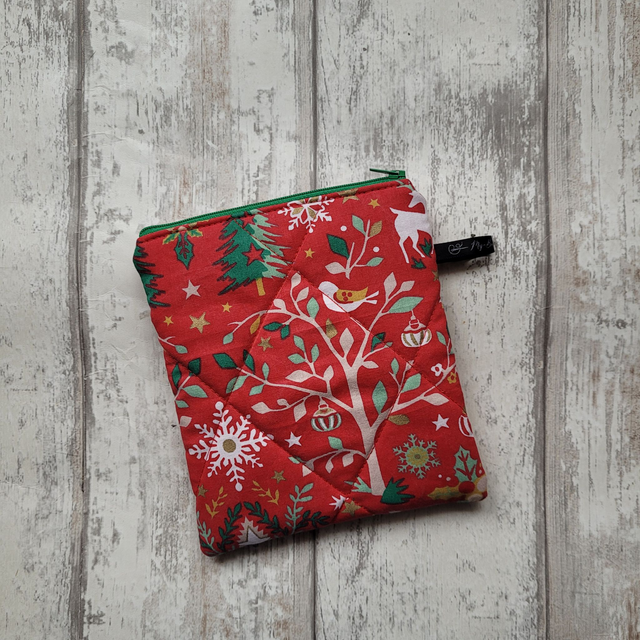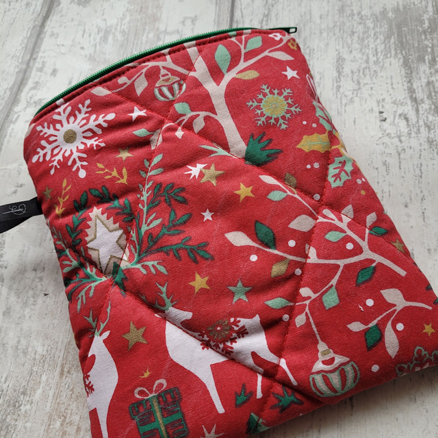 Pochette zippée pour liseuse : Hiver rouge et vert format S