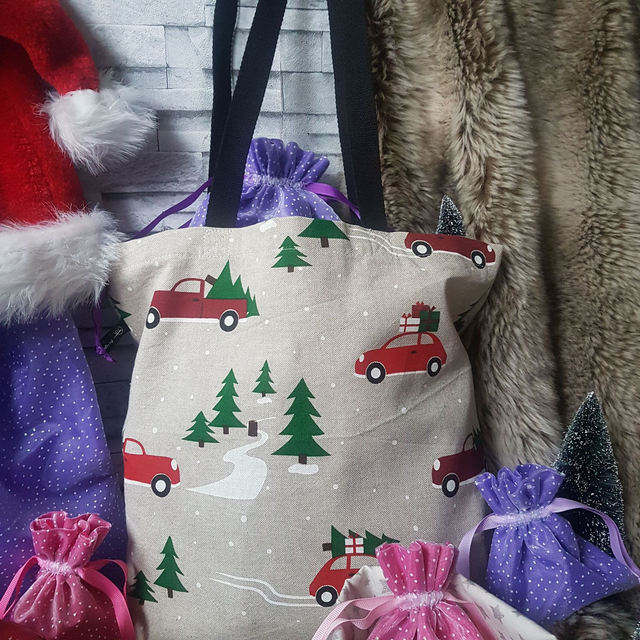 Tote bag en coton épais d'environ 36.5 cm de hauteur x 35 cm de largeur.